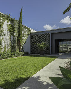 Minimalism meets industrial style in the Milos Coffee Table, showcasing a concrete-inspired aluminum finish in Concrete or Ivory.