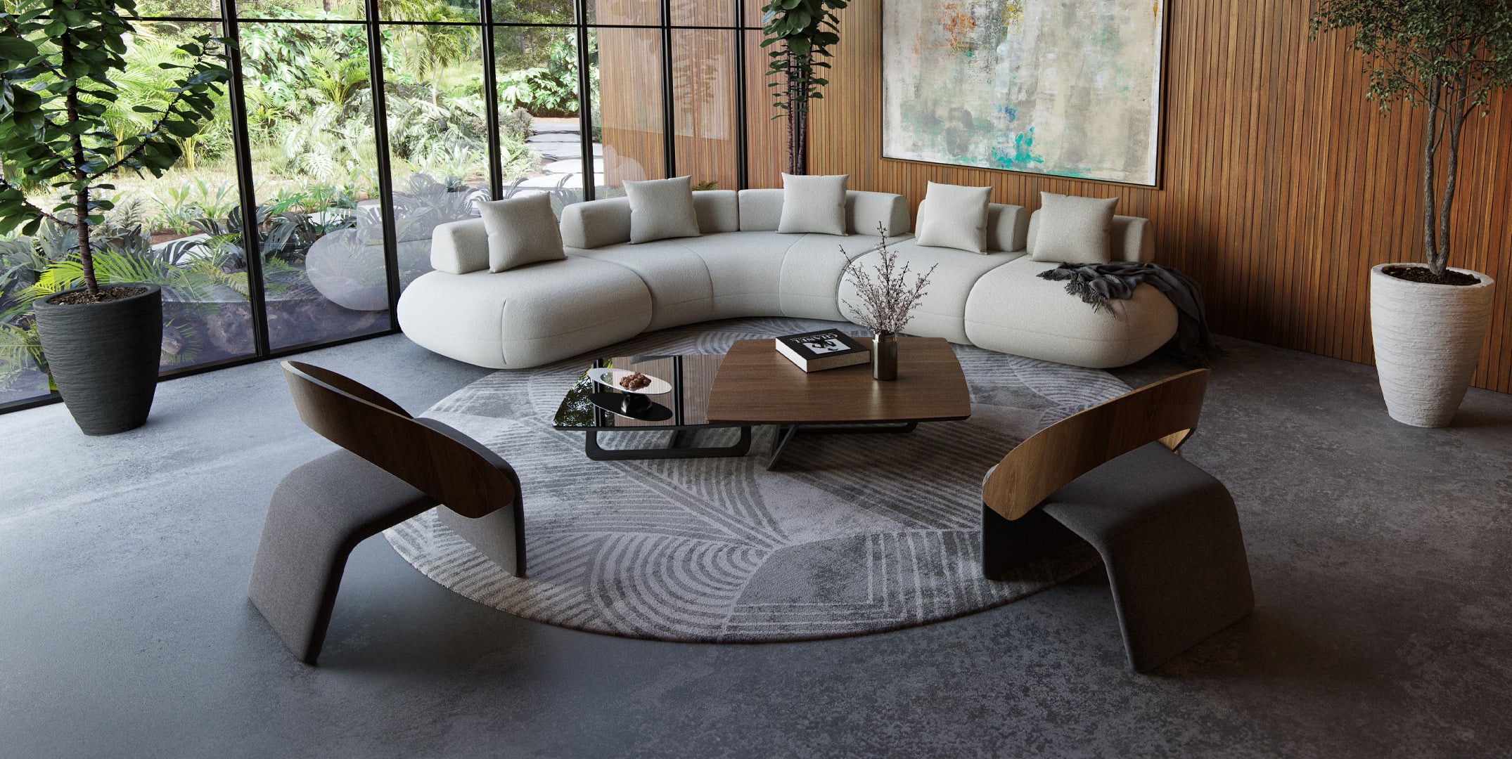 Every detail of the Belvedere Coffee Tables stands out, from the curved-square glass tops to the nested two-level design. The outward-arching angles of the solid natural Jequitiba wood cross base create a stunning, sculptural effect that elevates any living room.