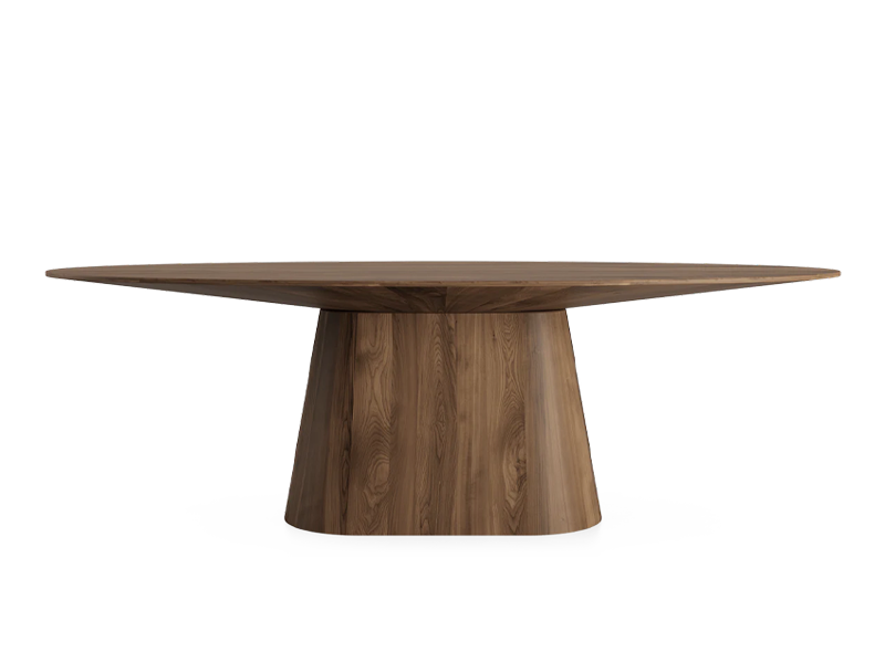 The Sullivan dining table is a modern, elegant piece. Its reverse-pyramid top and tapering base create a stunning design, comfortably seating up to 8 guests.